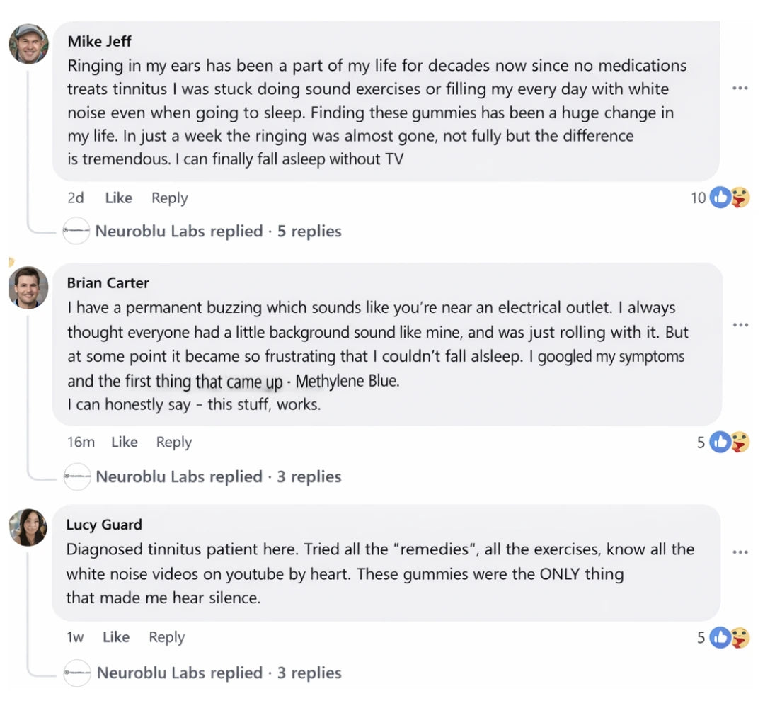 Look at at all 500,000+ studies proving Methylene Blue effects. Look at our reviews. 100,000+ people tried Neuroblu gummies and got their hearing back. But we get it, you're still skeptical. And that's okay.